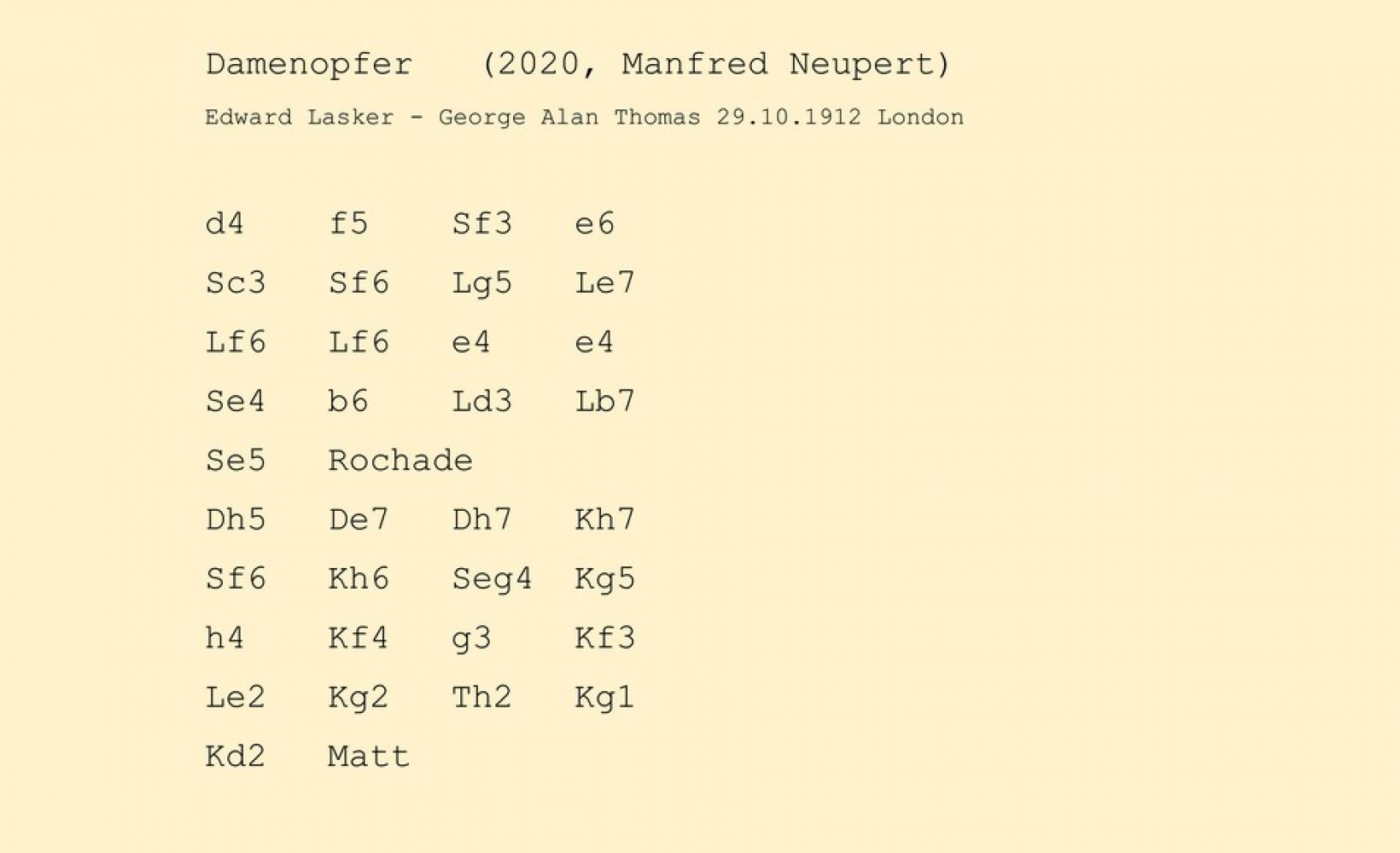 Edward Lasker - George Alan Thomas 29.10.1912 London